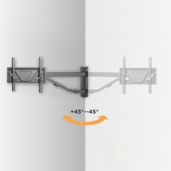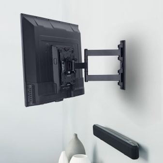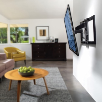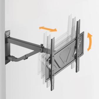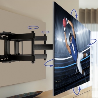 Данный вид считается ещё более универсальным креплением, чем оба предыдущих. Большинство изделий этого вида не оснащается никакой электронной автоматикой: панель поворачивается движением руки пользователя. Это достойное решение для особо взыскательных в таком плане потребителей. Но он и дороже. Впрочем, этот факт не отталкивает людей, для которых ЖК-панель – полноценный медиацентр для дома.