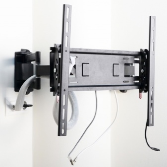 Кронштейн на поворотной основе позволяет не только поворачивать телевизор по одной из осей движения, но и немного выдвинуть его вперёд, несколько ближе к пользователю. Данный вид даёт возможность увеличить дистанцию от стены – в случае, когда диван или кресло окажутся передвинутыми. Более продвинутые модели оснащены электроникой и силовой электрикой, которые самостоятельно изменят положение телевизора или монитора относительно стены, повернув его в нужную сторону под нужным углом. Управление осуществляется с пульта, идущего в комплекте. Недостаток этих конструкций – большая дороговизна, порой достигающая разницы в несколько раз – по сравнению с аналогичными приспособлениями, не обладающими такой функцией.
