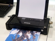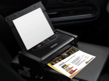 Популярная портативная модель изумительного качества. Является струйным аппаратом. Epson WorkForce WF-100W отличается компактными размерами, особенно в сравнении со стандартными офисными экземплярами. Весит девайс 1,6 кг. Может печатать страницы формата A4. Изображение может быть цветным или черно-белым.
