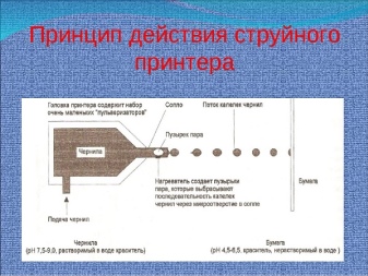 В струйном принтере установлены драм-картриджи, через сопла печатающей головки выходят микрокапли чернил. Они наносят текст или изображение на бумагу отдельными точками.